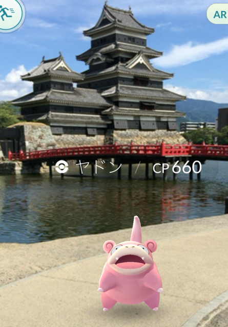 国宝松本城です。城をバックに「ヤドン」です。なかなか愛嬌があります。