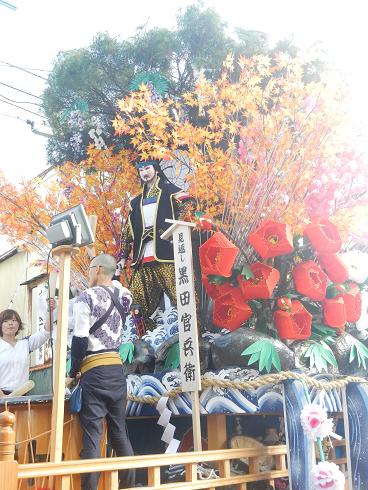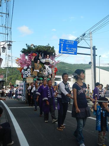 この地方の山車は、見返し場面として後ろに、違うテーマの人形が登場します。八戸まつりでもこんな山車でした。